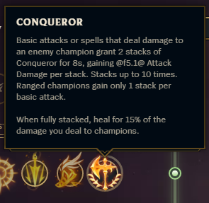 [Hiệu ứng mới] "Đòn đánh thường hoặc kỹ năng gây sát thương lên một tướng địch nhận 2 điểm cộng dồn của Chinh Phục trong 8 giây, tăng X SMCK mỗi điểm cộng dồn. Cộng dồn lên tới 10 lần. Tướng đánh xa chỉ nhận được 1 điểm cộng dồn từ mỗi đòn đánh thường."