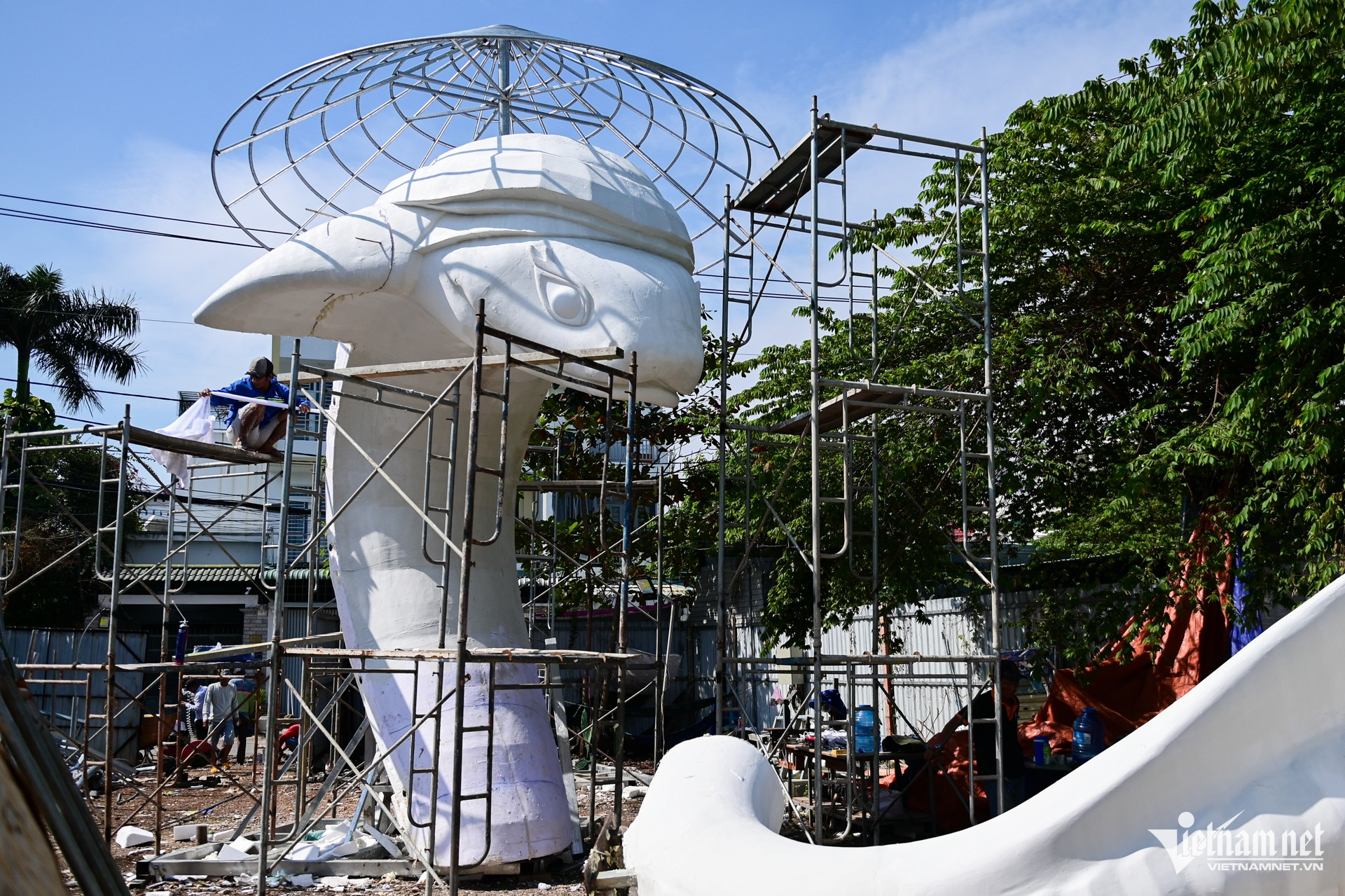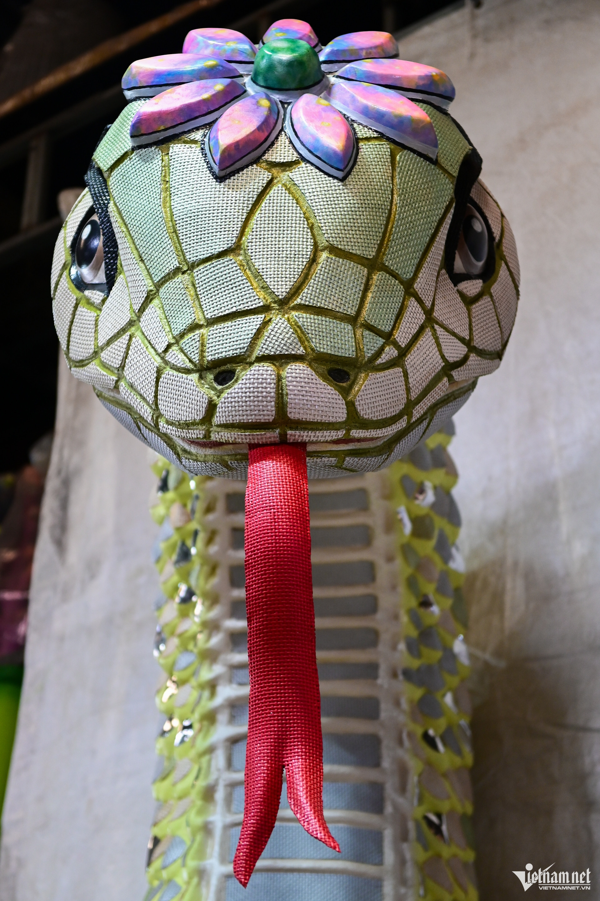 Cặp đôi linh vật rắn sẽ xuất hiện tại cổng chào đường hoa Nguyễn Huệ 2025 đang được tích cực hoàn thiện tại một xưởng sản xuất quận 12 (TPHCM). Hai linh vật rắn sinh động có tên Ngân Tỵ (con cái) dài 25m và Kim Tỵ (con đực) dài 42m, cao trên 6m.