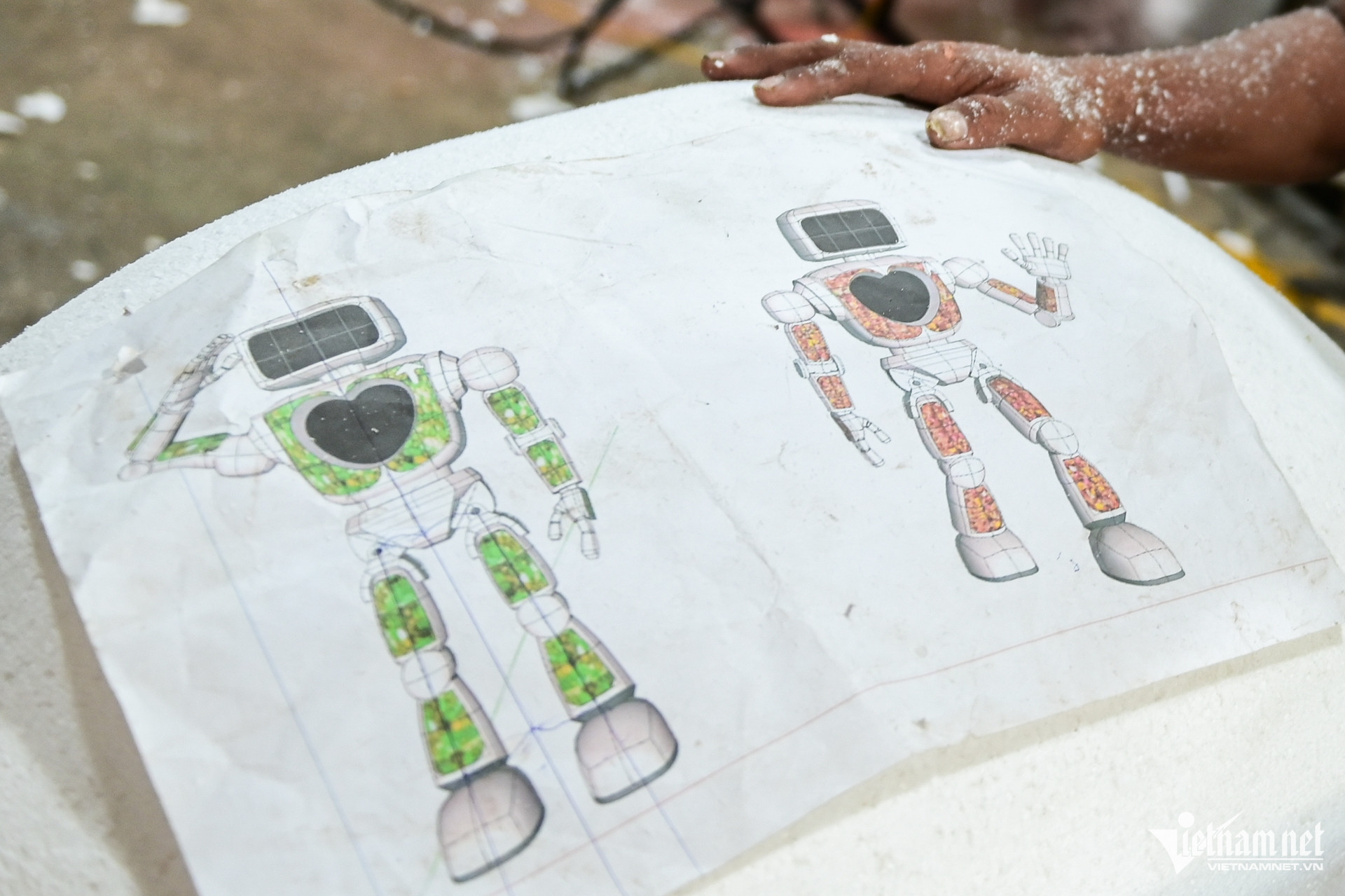 Các hạng mục của robot Bông đang được công nhân hoàn thiện một cách tỉ mỉ.