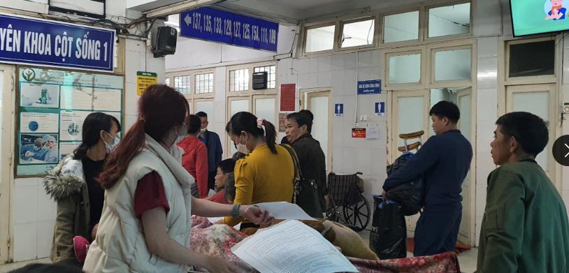Chị H. (ở Hải Phòng) đưa chồng bị sỏi thận đến mổ tại Bệnh viện Việt Đức từ sáng 27/2. Chờ khám từ 5h sáng đến 16h30 hôm qua, chị mới làm xong thủ tục nhập viện cho chồng.