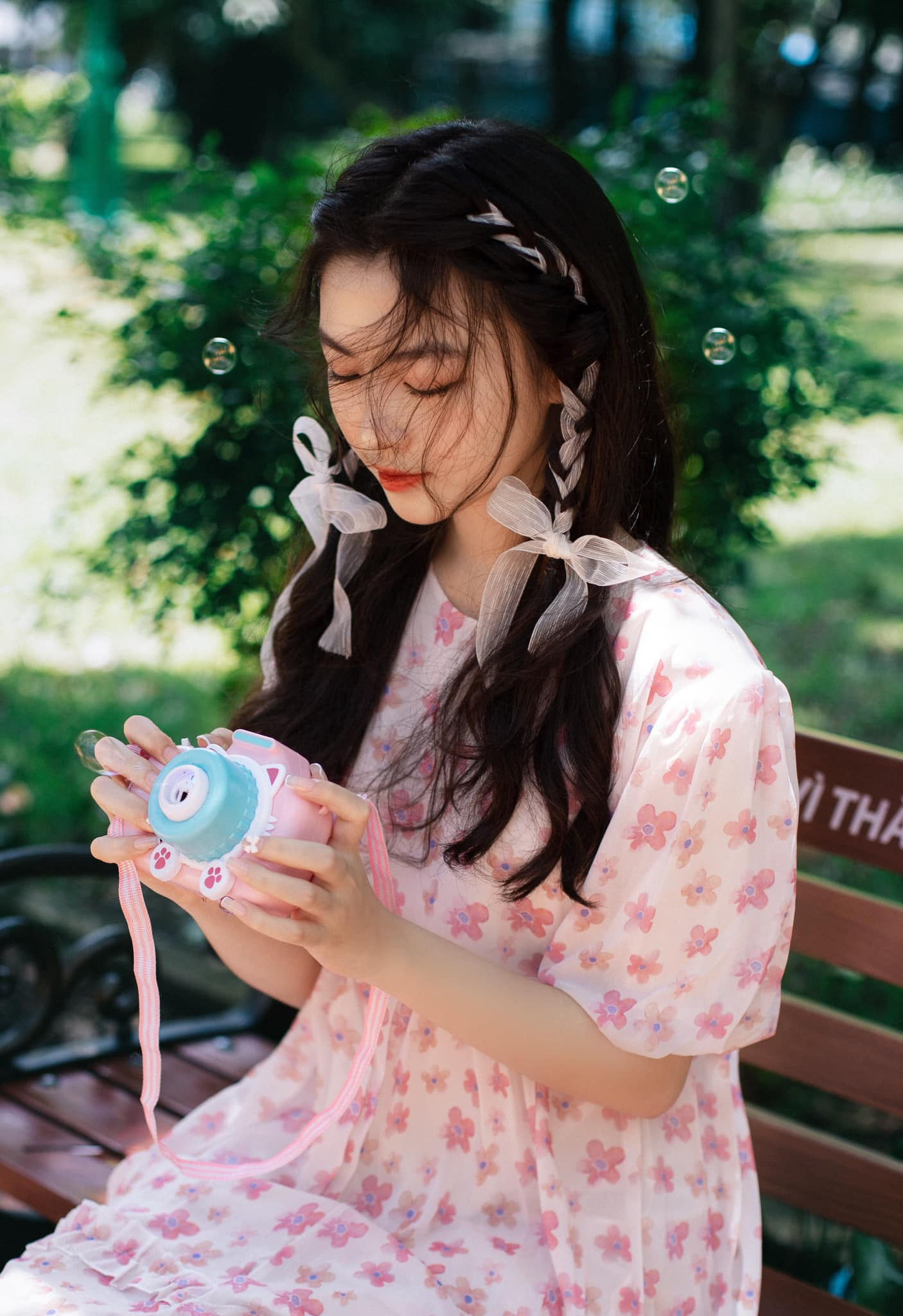 Trong bộ ảnh mới, Lọ Lem diện đầm màu tím mộng mơ, tóc đính nơ cùng tông màu duyên dáng.