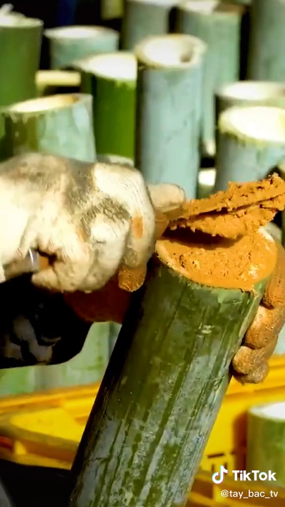 Muối sẽ được lắp đầy vào trong các ống tre. Ảnh: Tiktok