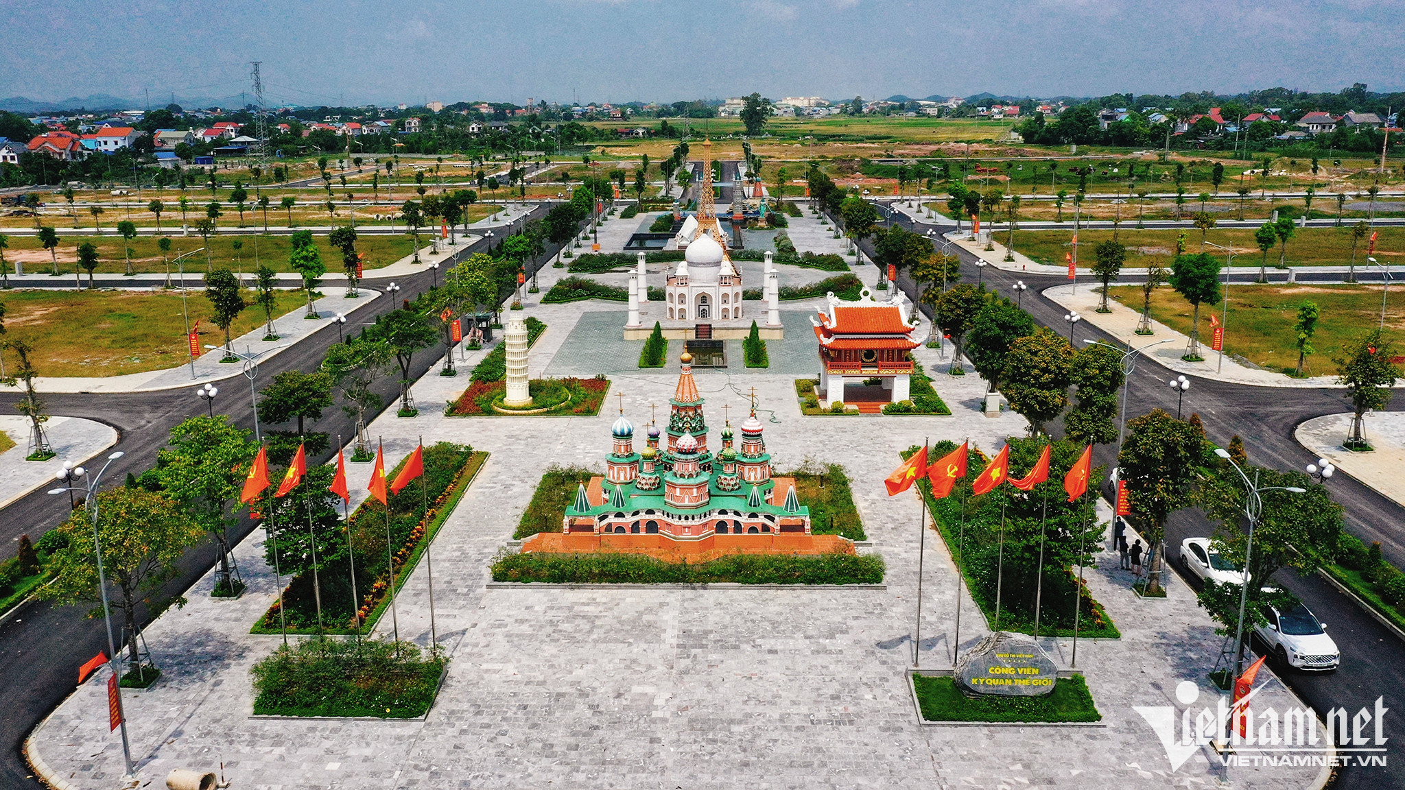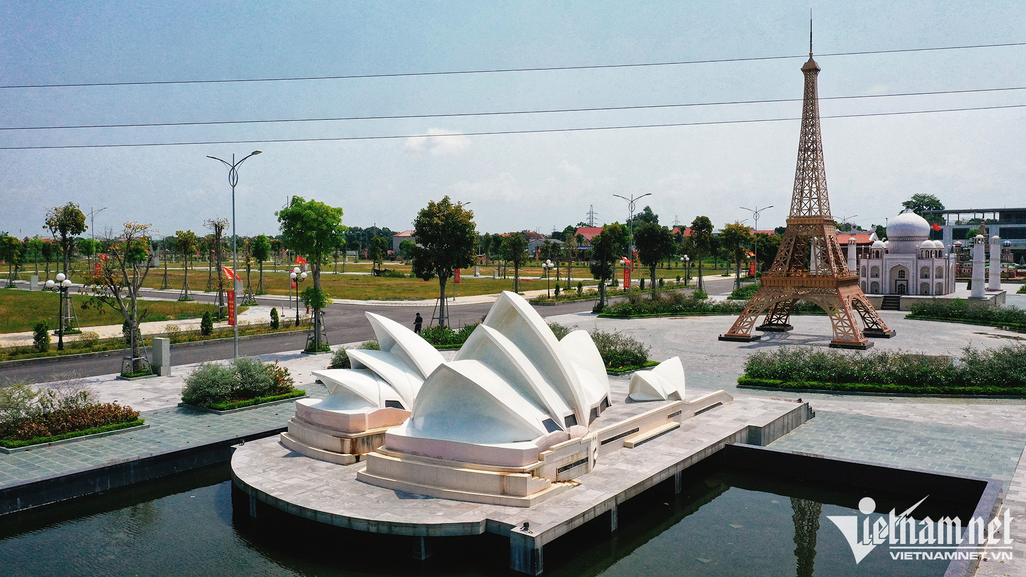Các mô hình Đền thờ Taj Mahal, Cung điện Kremlin, tượng Nữ thần tự do, tháp nghiêng Pisa... được dựng lên trong một khu đô thị mới thuộc thành phố Phổ Yên (Thái Nguyên), thu hút sự chú ý của người đi đường.