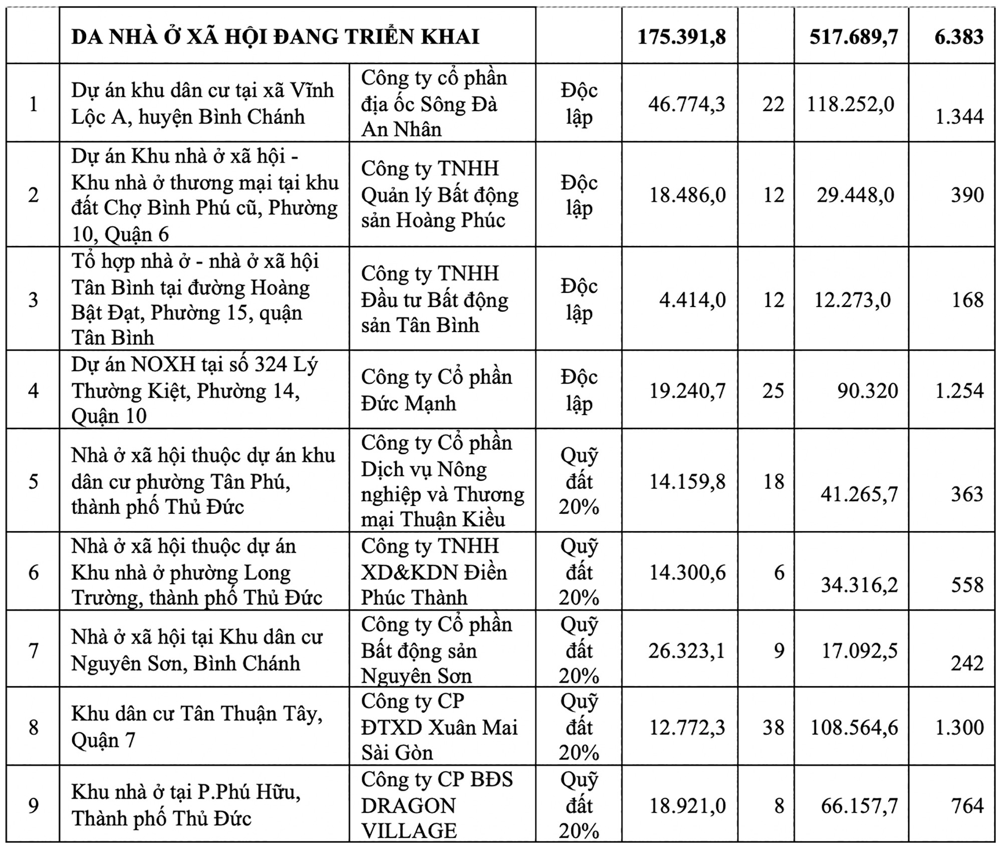 Hiện nay, trên địa bàn TP.HCM có 9 dự án NƠXXH đang triển khai, tổng quy mô 6.383 căn hộ. Trong 9 dự án này có 5 dự án được chuyển tiếp từ giai đoạn 2016 – 2020.