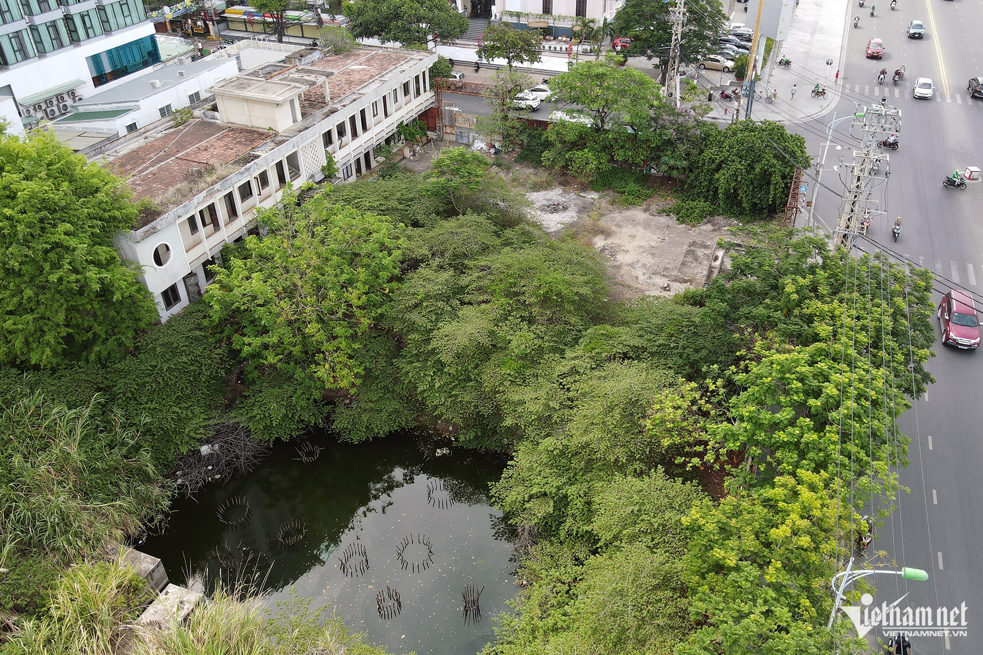 Ghi nhận của PV VietNamNet, từ trên cao nhìn vào bên trong khu đất cỏ mọc um tùm, một số công trình là khu nhà hoang phế, xuống cấp. Mùa mưa, giữa khu đất bị trũng, trở thành "ao nuôi muỗi".