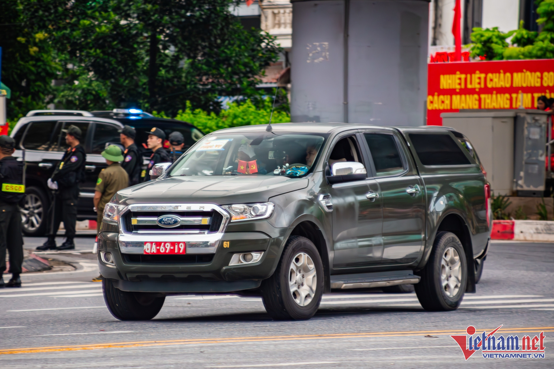 Trong số các xe dùng làm xe dẫn đoàn tại lễ kỷ niệm trọng đại này, Ford Ranger có số lượng xuất hiện khá nhiều. So với phiên bản thương mại, chiếc xe này được sơn ngoại thất màu xanh lục dành cho xe quân sự.