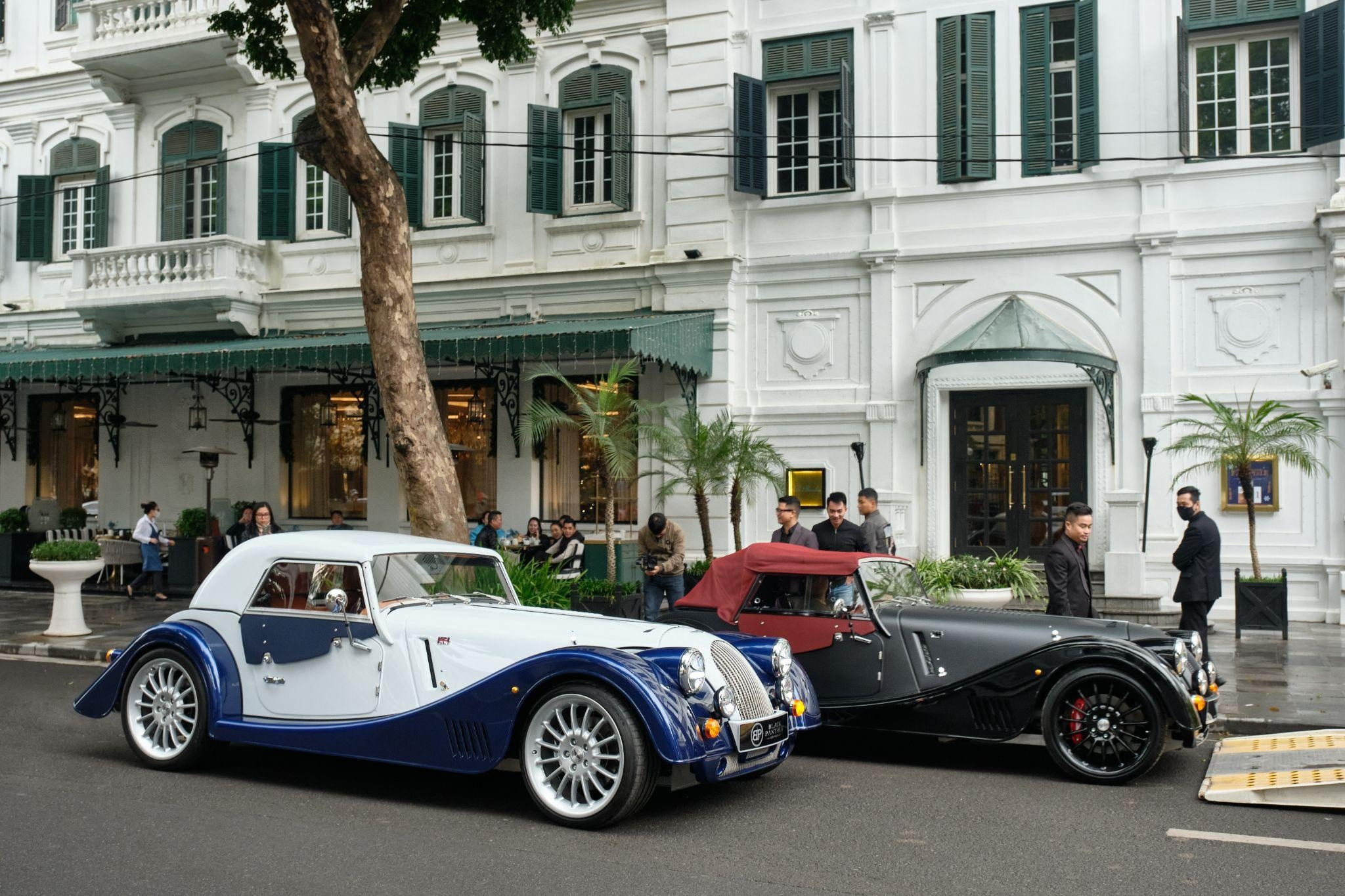 Được biết đến như "thánh địa siêu xe" tại Hà Nội, khách sạn Sofitel Legend Metropole trên đường Ngô Quyền là điểm quy tụ quen thuộc của những mẫu siêu xe, xe siêu sang. Hôm nay (10/12), nơi đây có phần đặc biệt hơn nhờ sự xuất hiện của loạt xe thể thao cổ điển đến từ thương hiệu Morgan Motors.