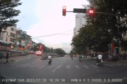 Chia sẻ với VietNamNet, tài xế Nguyễn Ngọc (phường Thành Công, Hà Nội) cho biết thời điểm này ngay khi đèn đỏ theo hướng Đại lộ Thăng Long đi Hòa Lạc vừa chuyển đếm ngược về 0, rất nhiều ô tô xe máy cùng đồng loạt lao ra ngã tư, nhưng sau đó đèn vẫn chưa chuyển sang xanh.