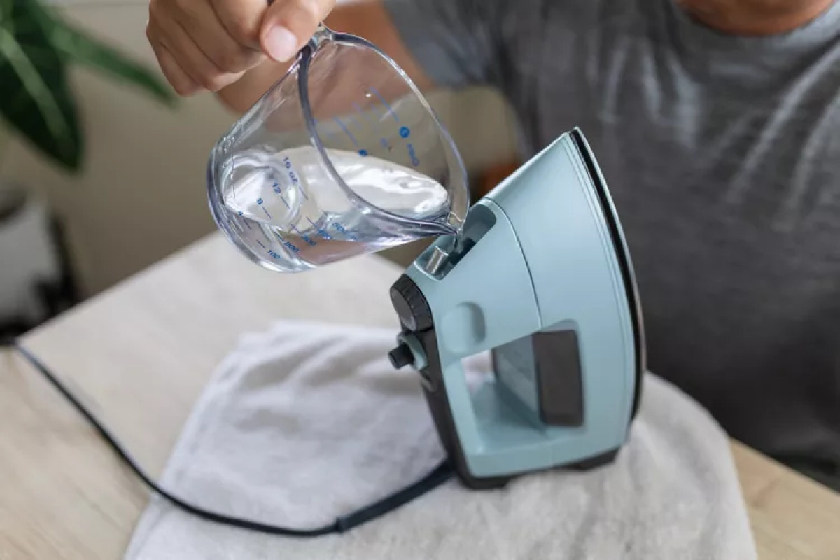 Khi bàn là nguội, rửa sạch ngăn chứa bằng nước cất. Đổ đầy nước vào và lắc nước qua các lỗ thông hơi lên một miếng vải cũ. Cuối cùng, ủi một miếng vải cũ trong vài phút để loại bỏ cặn bẩn trước khi chuyển sang ủi quần áo mặc được.