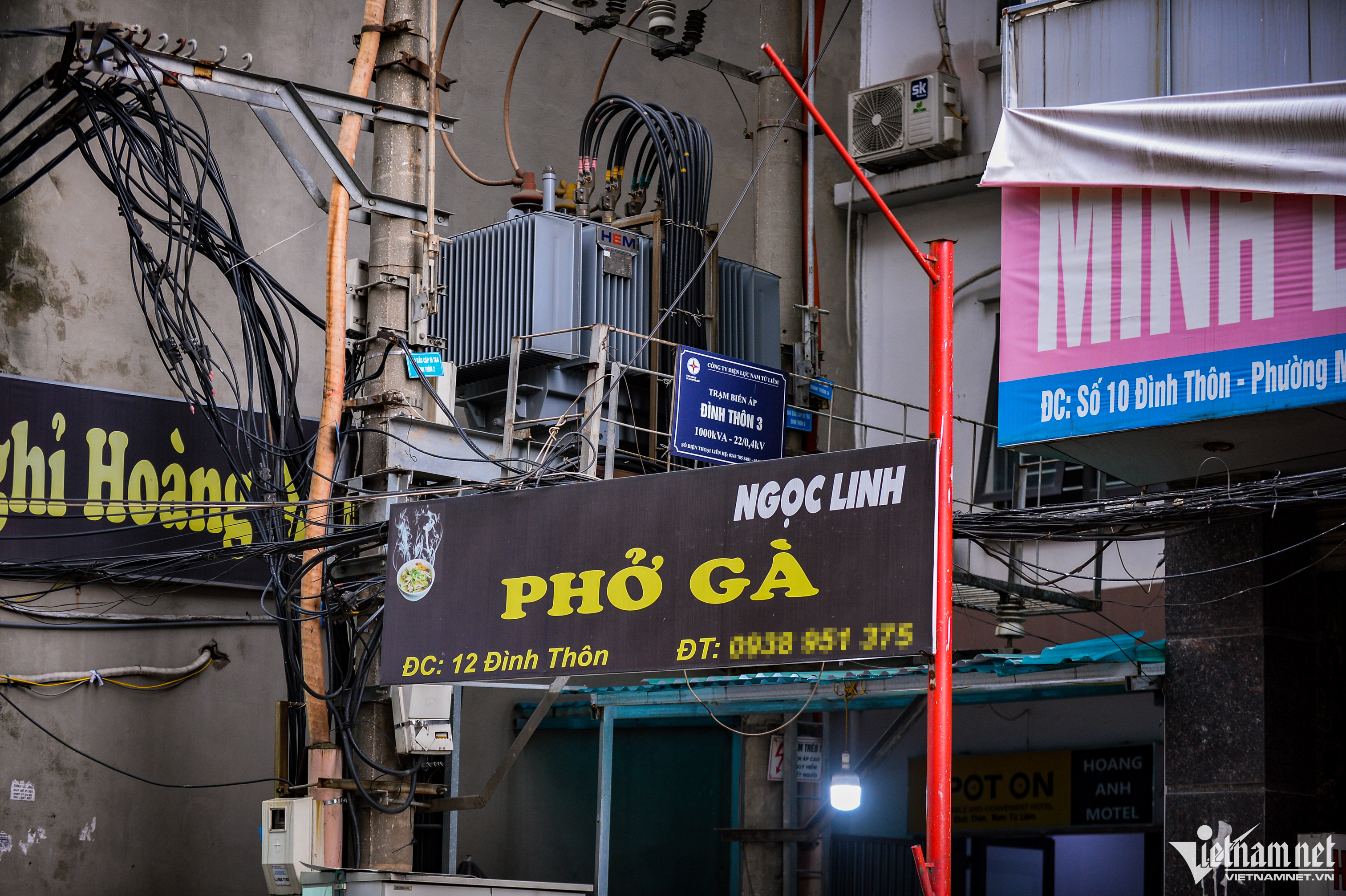 Người dân tận dụng cột để treo các mặt hàng buôn bán. Chủ cửa hàng này thậm chí còn tự bắt vít, hàn giá đỡ để treo biển phụ.Những chiếc cột trơ trọi không được sử dụng đúng công năng, dây điện bó chằng chịt ngay trước biển hiệu khiến mỹ quan tuyến phố bị nhem nhuốc. Hiện đa số các chủ cửa hàng đã thay đổi biển hiệu khác do nhu cầu quảng cáo đòi hỏi sự khác biệt, dễ nhận dạng. Từ một kiểu duy nhất, đến nay đường phố màu sắc lệch tông, "mạnh ai nấy làm". Chị Phan Thị Ngọc, kinh doanh trái cây tại phố Đình Thôn chia sẻ: "Dù ban đầu cột được dựng để vừa với không gian cửa hàng nhưng sau nhiều năm một số hộ không còn kinh doanh, cho thuê thì chủ mới lại cải tạo, họ làm biển mới, thậm chí chẳng sử dụng cột. Nhiều cửa hàng cứ lặp lại như thế khiến con phố hiện nay mỗi nhà mỗi vẻ, trông không còn đồng bộ mà rất lộn xộn". Tấm biển quảng cáo được chống đỡ chỉ bởi một bên cột. Người chủ cửa hàng này cho biết không muốn thiết kế biển quá dài vì chiều rộng của quán chỉ 4m. Khung cảnh nhếch nhác xuất hiện khi một số tiểu thương mặc nhiên bày bán chắn ngay trước lối ra vào tổ dân phố.Phố Đình Thôn thường xuyên ùn tắc, khó di chuyển kể cả khi chưa đến giờ tan tầm."Nếu giới thiệu cho khách phương xa tới rằng đây là tuyến phố kiểu mẫu, tôi chắc chắn rằng không ai tin nổi, họ sẽ phì cười", chị Thanh, một người dân sinh sống ở khu vực này khẳng định.