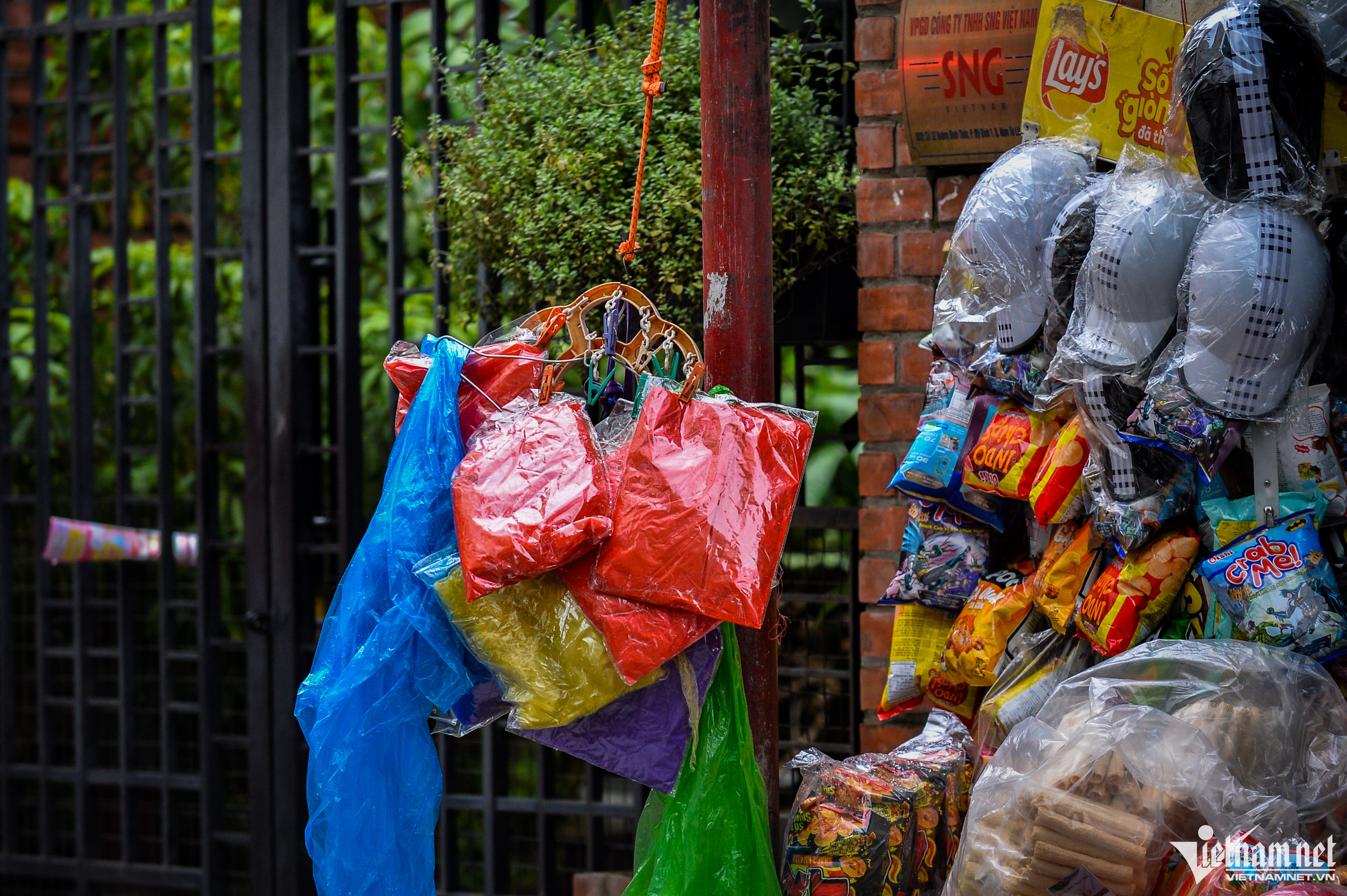 Những chiếc cột thành nơi treo biển quảng cáo phụ. Một số hộ kinh doanh dù không thuộc diện được sử dụng cột cũng tranh thủ "tận dụng" không gian để treo bảng rao vặt.