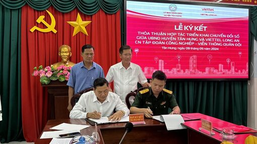 UBND huyện Tân Hưng, tỉnh Long An và Viettel Long An vừa tổ chức lễ ký kết thỏa thuận hợp tác về chuyển đổi số giai đoạn 2024 - 2025, định hướng đến 2030.