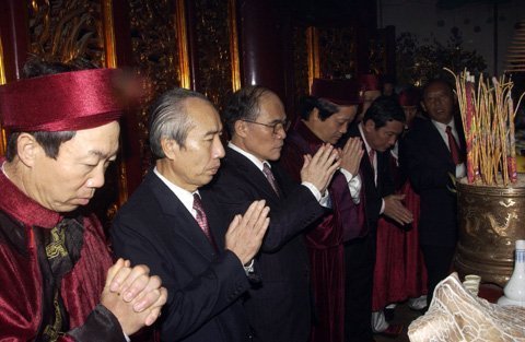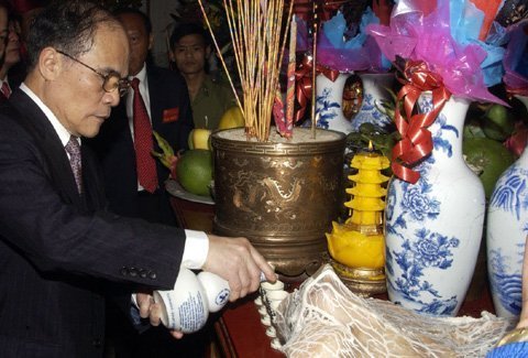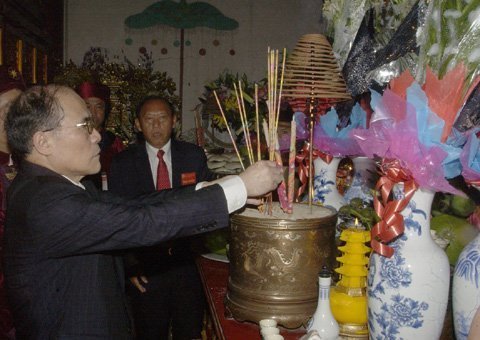 Đến dự Lễ dâng hương có Chủ tịch Quốc hội Nguyễn Sinh Hùng; Chủ tịch Ủy ban TƯ MTTQ Việt Nam Huỳnh Đảm cùng đông đảo đồng bào.