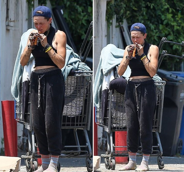 Nữ người mẫu nóng bỏng một thời nay nhếch nhác trong bộ quần áo bám đầy bụi bẩn cùng gương mặt lấm lem. Loni Willison thậm chí còn không đi giày mà chỉ có đôi tất đã sờn cũ. Cô lục lọi thùng rác và tìm được một chiếc xúc xích.
