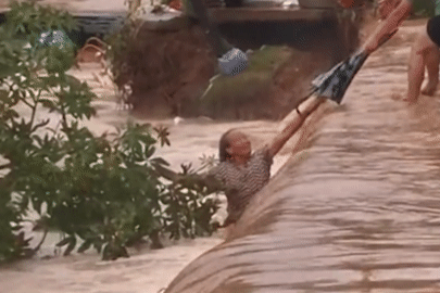 TRUNG QUỐC - Đoạn video ghi lại khoảnh khắc thót tim khi chứng kiến cảnh 5 người đàn ông hợp sức để giải cứu người phụ nữ lớn tuổi bị dòng nước lũ cuốn trôi.