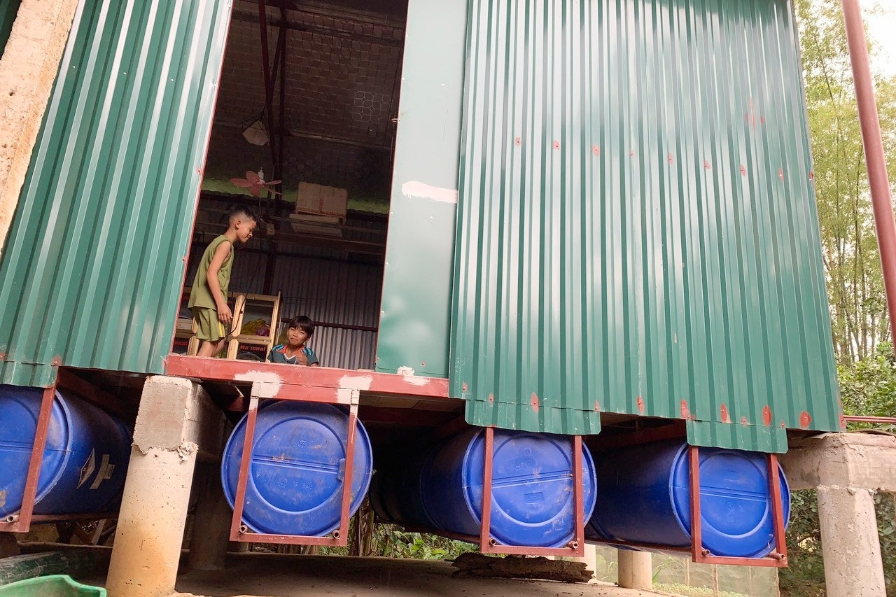 Để chủ động sống chung với lũ, bà con xã Điền Mỹ (Hương Khê, Hà Tĩnh) đã đầu tư xây dựng nhà phao. Đến mùa lũ, bà con an tâm vì ngôi nhà sẽ nổi lên khi nước tràn về.