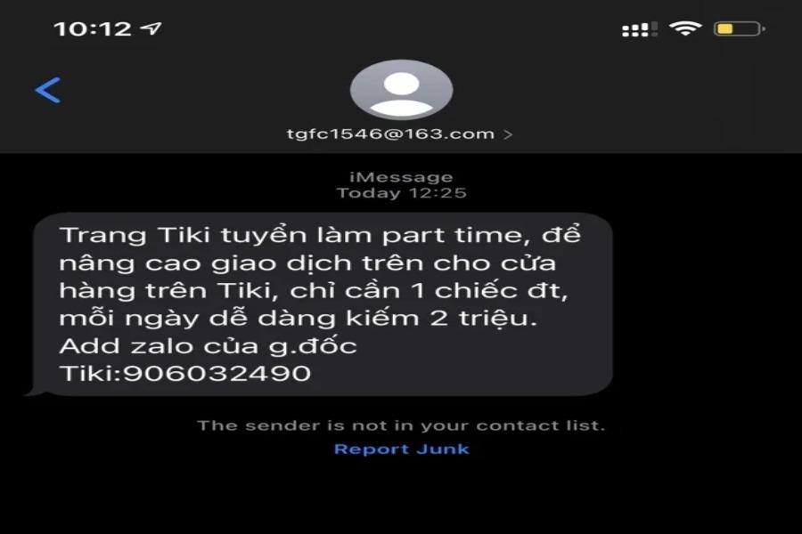 Nhiều người dân tại TP.HCM nhận được tin nhắn mạo danh sàn thương mại điện tử để lừa đảo tuyển dụng với mức lương 2 triệu đồng/ngày.