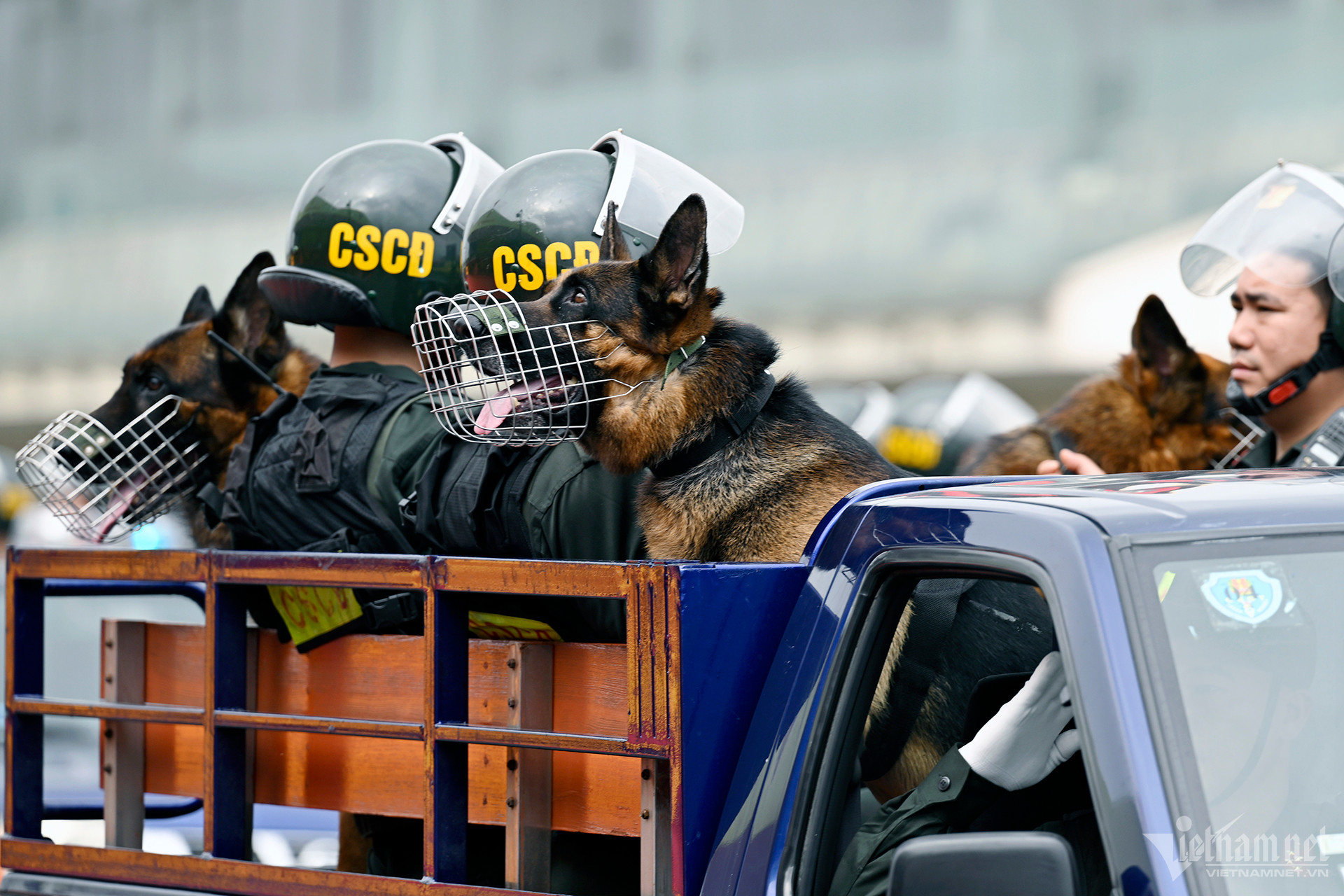 Bên cạnh đó, hơn 100 trang thiết bị, xe đặc chủng hiện đại như: Xe chỉ huy, xe tác chiến chống bạo loạn, xe chống khủng bố, xe bọc thép chống đạn, xe phá sóng… phục vụ công tác chiến đấu, huấn luyện cũng đã diễu hành đầy khí thế.