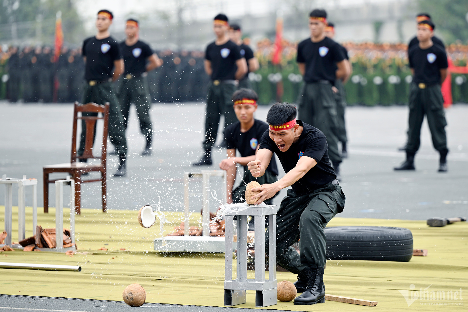 Đáng chú ý, người xem “mãn nhãn” chứng kiến các chiến sĩ Cảnh sát cơ động, Cảnh sát đặc nhiệm… biểu diễn các màn võ thuật, khí công, dùng tay chặt gạch, lưng trần nằm trên bàn chông, lưỡi kiếm… đầy ấn tượng.