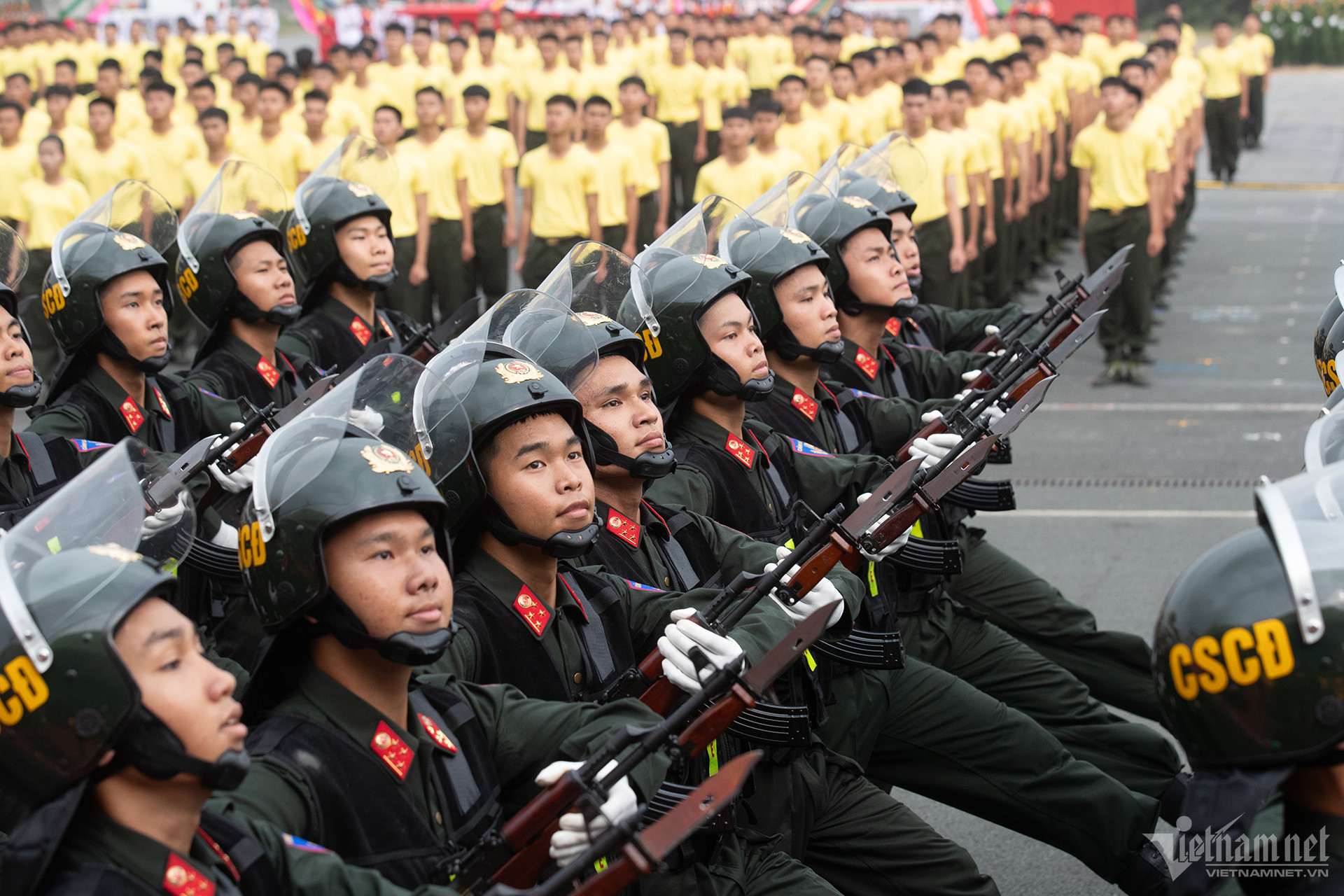Trong không khí hào hùng của lễ kỷ niệm, hơn 5.000 cán bộ, chiến sĩ Cảnh sát cơ động đã diễu binh, diễu hành. Với 25 khối cán bộ, chiến sĩ diễu binh đầy trang nghiêm, động tác đều, mạnh mẽ, thống nhất.