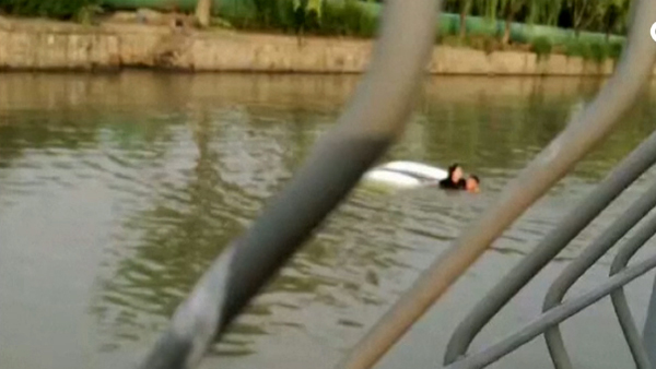 Nữ tài xế lùi xe xuống sông, nam đồng nghiệp không biết bơi vẫn lao theo