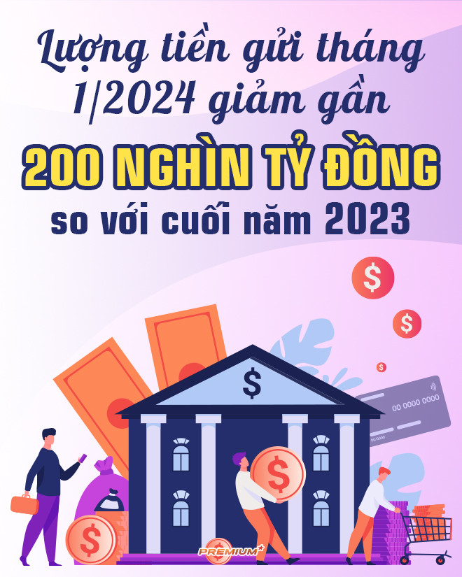 Trong tháng 1/2024, lượng tiền gửi của các tổ chức kinh tế vào ngân hàng giảm 165 nghìn tỷ đồng, lượng tiền gửi từ khu vực dân cư giảm 34 nghìn tỷ đồng so với cuối năm 2023.