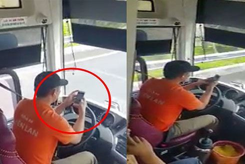 Tài xế vừa lái xe buýt, vừa lướt web khiến nhiều hành khách bức xúc
