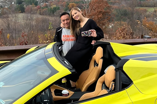 Trong dàn xe, Phạm Thanh Thảo thích nhất chiếc Corvette C8.R 2022 màu vàng từ lần đầu sang Mỹ định cư. Sau khi kết hôn, thỉnh thoảng chị tâm sự điều này với chồng, không ngờ anh âm thầm đặt mua một chiếc có khắc tên "Phạm Thanh Thảo". Dịch Covid-19 bùng phát, ca sĩ phải đợi đến 18 tháng mới chính thức nhận món quà đắt giá từ ông xã.