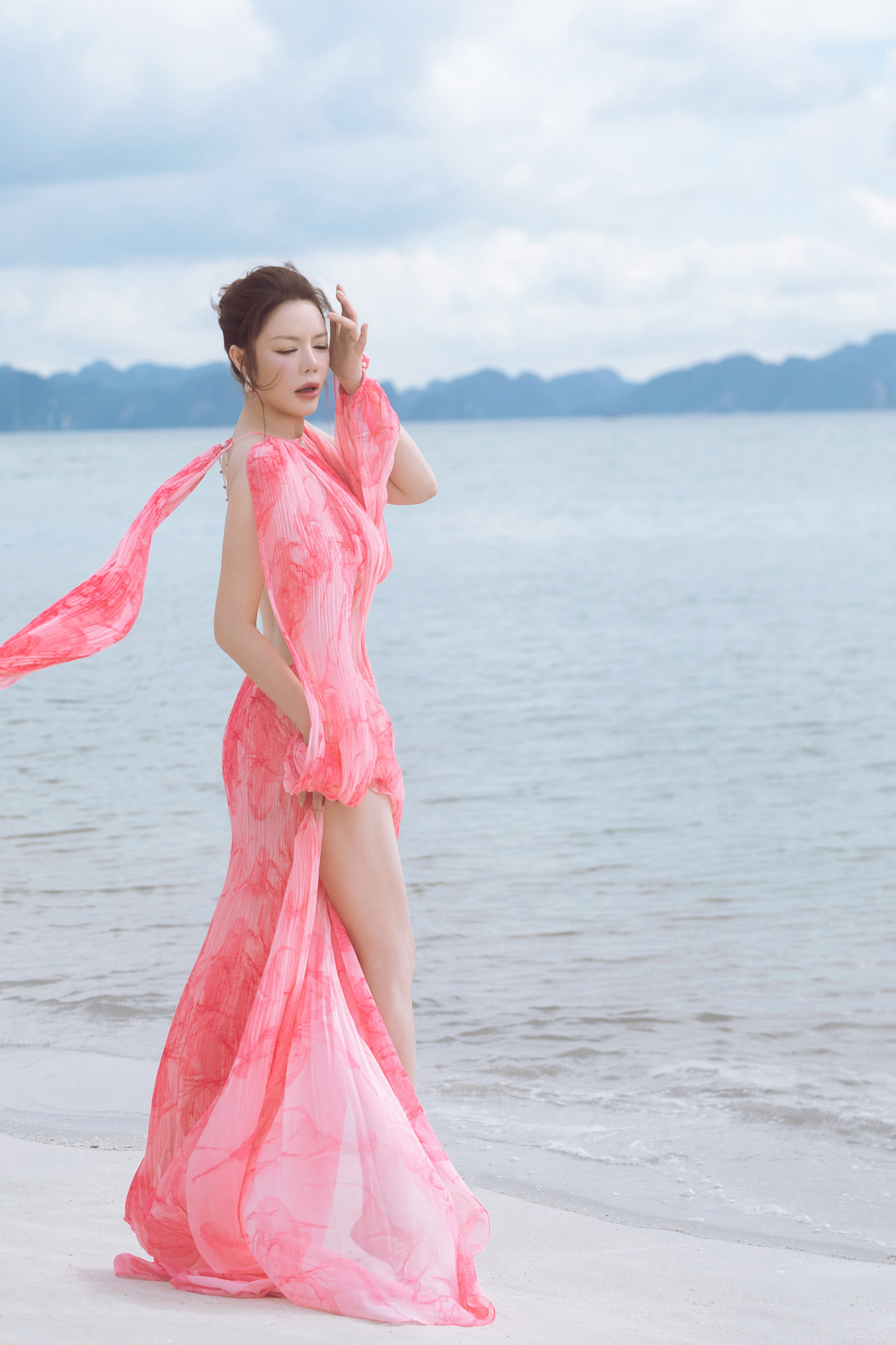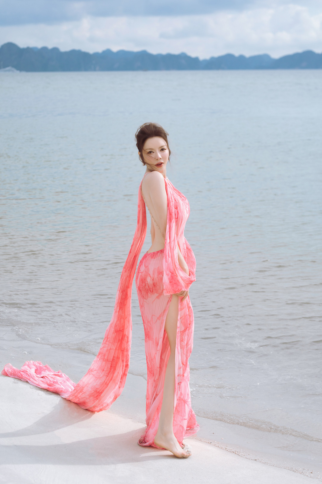 Và những bộ cánh lần này đã đáp ứng được sự mong đợi đó, giúp Lý Nhã Kỳ tỏa sáng như một nàng thơ giữa khung cảnh hùng vĩ và thơ mộng của vịnh Hạ Long.