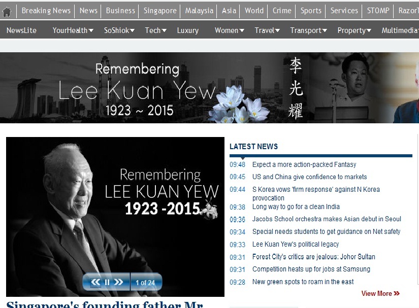 Truyền thông Singapore để tang ông Lý Quang Diệu