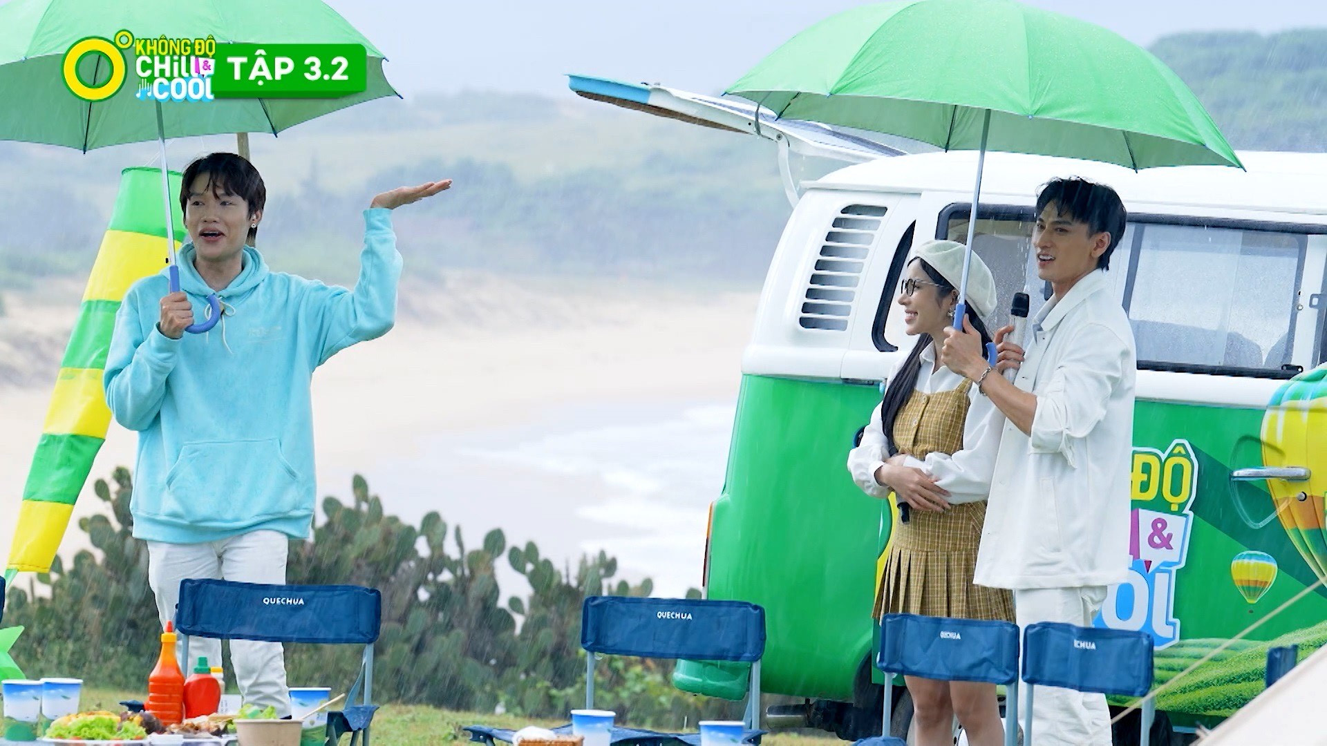 Không gian âm nhạc liên tiếp được đẩy lên cao trào với “Mascara” của host Quang Trung. Tuy nhiên ấn tượng và up mood nhất để xua tan mọi căng thẳng của tập 3 này phải là màn song ca siêu đỉnh hit “Please tell me why” của Isaac và LyLy dưới cơn mưa bất chợt của Phú Yên.