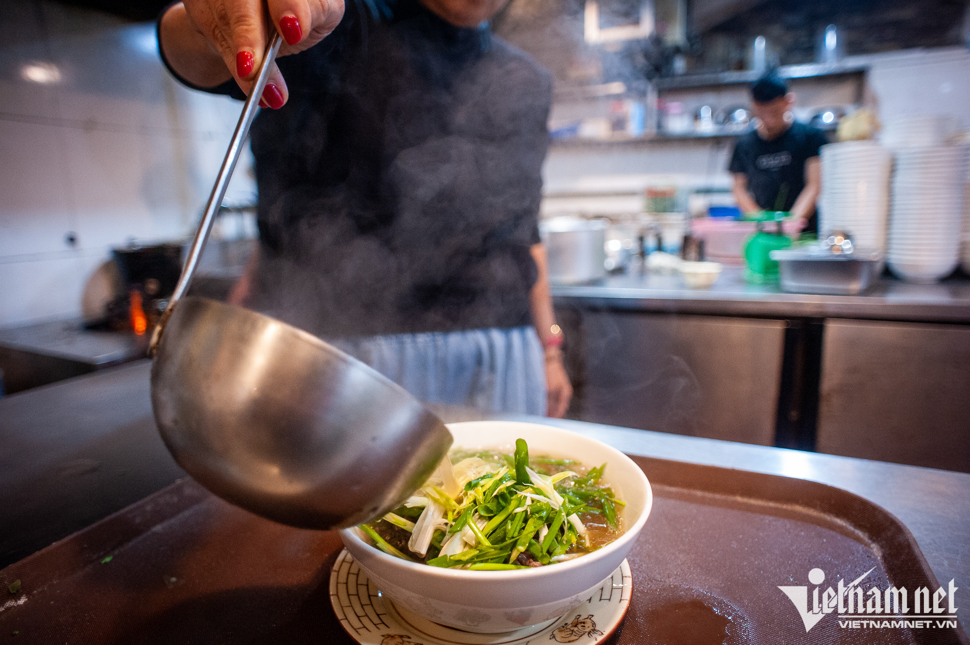 Một hàng phở khác cùng có tấm biển mang thương hiệu này tại phố Nguyễn Thị Định (phường Trung Hòa, Cầu Giấy), cũng chỉ lác đác một vài khách vào buổi sáng.