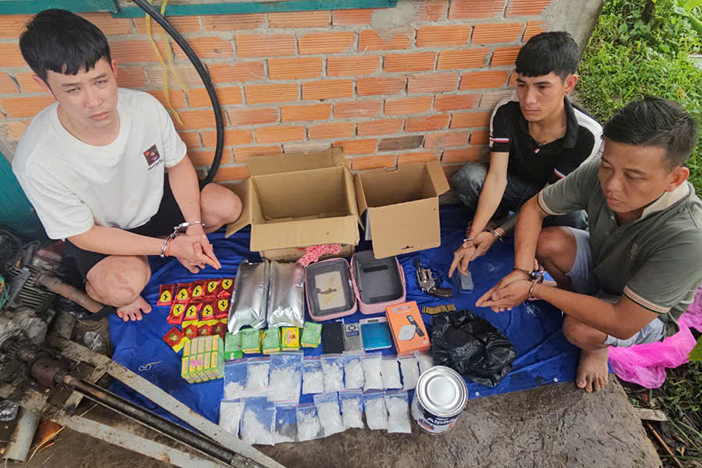 Triệt phá ổ nhóm này, công an ở TPHCM thu giữ lượng lớn ma túy và 5 khẩu súng cùng đạn dược. Đối tượng cầm đầu là thanh niên 26 tuổi, khai nhận hàng từ “Anh 2” ở Campuchia.