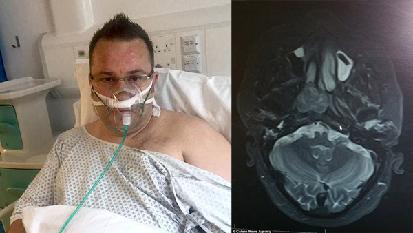 Sau 2 năm bị cảm lạnh và uống đủ loại thuốc không khỏi, người đàn ông 42 tuổi đi khám ở bệnh viện và phát hiện khối u 4cm ở sau mũi.
