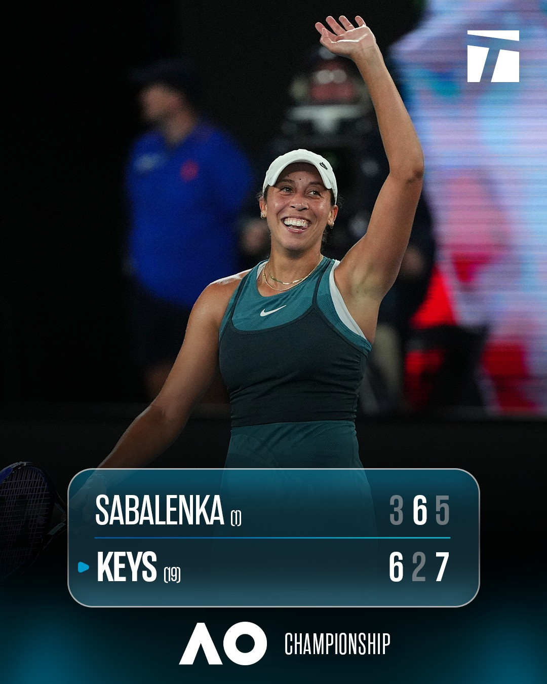 Bước vào set quyết định, 2 tay vợt giằng co quyết liệt tới tận game 12, thời điểm Keys dẫn 6-5, đối diện 2 Championship-point và Sabalenka cầm giao bóng.
