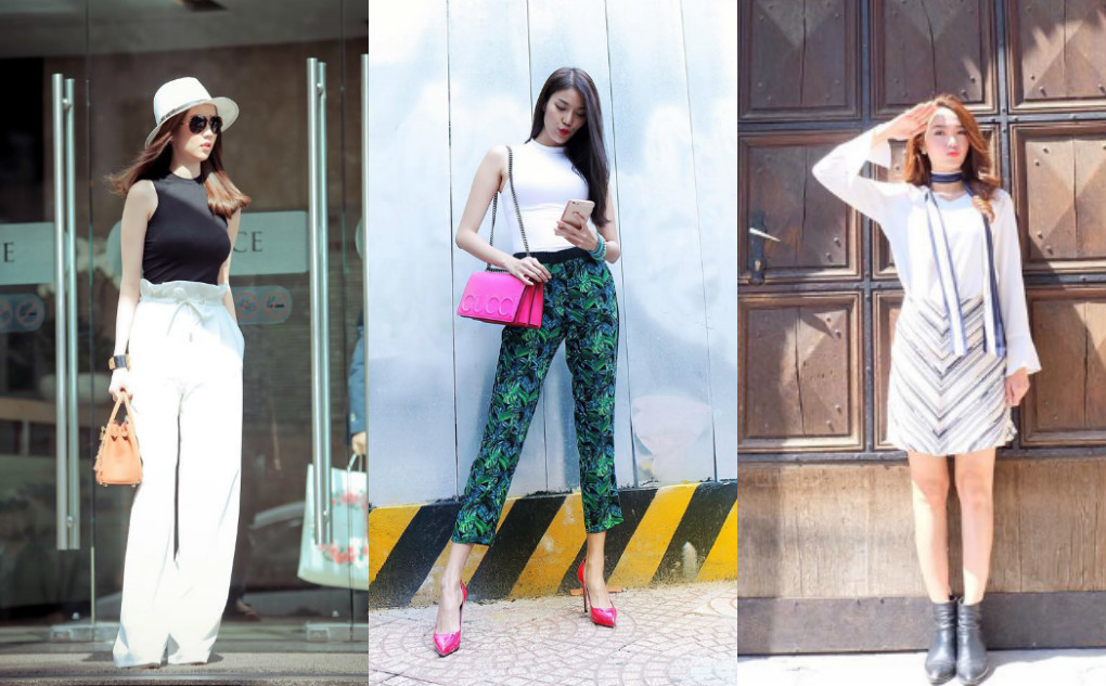 Hà Hồ cùng Hoàng Thùy 'so găng' khi phối đồ cùng với một chiếc quần skinny jeans.