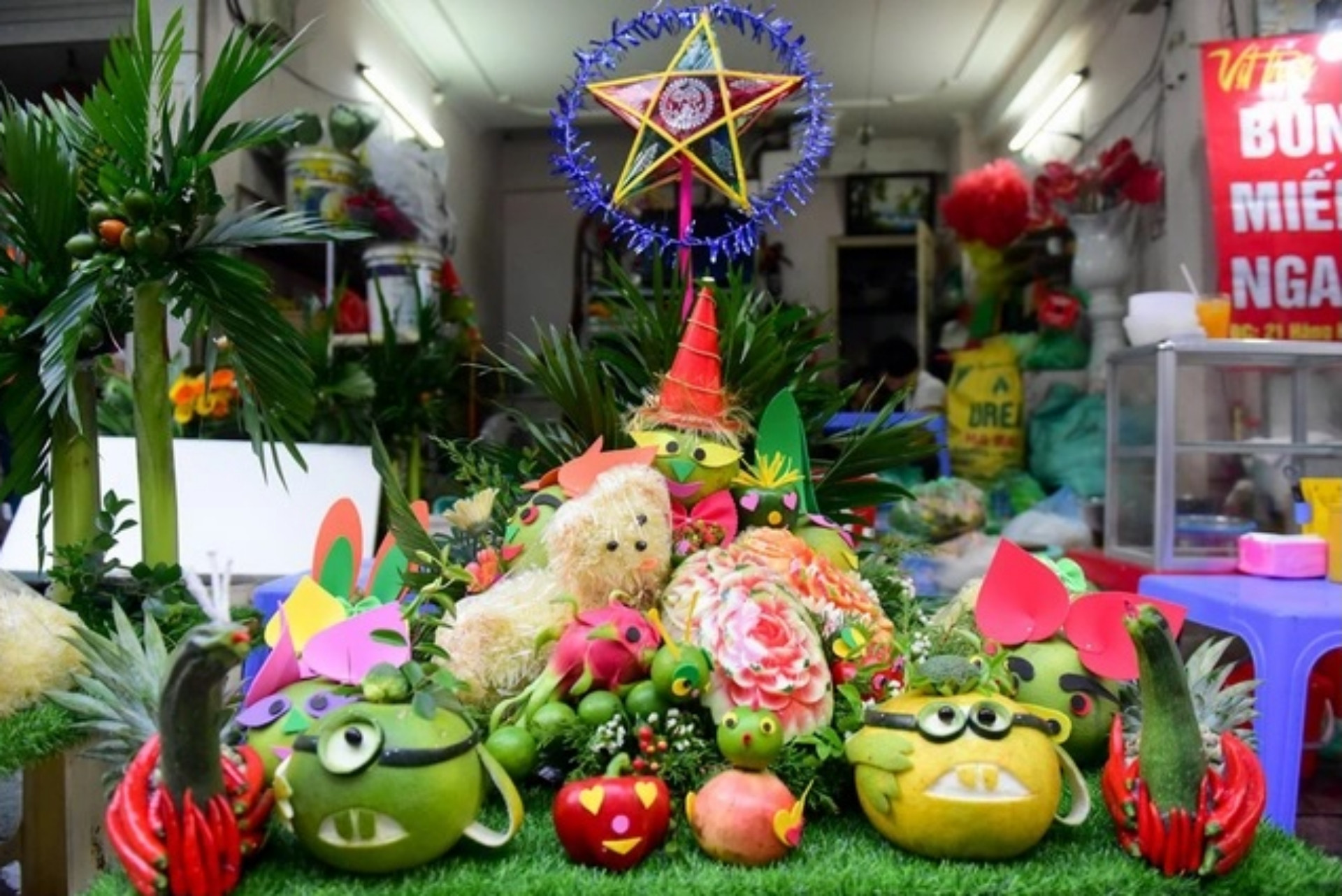 Một số gia đình thường tỉa hoa quả thành những hình thù ngộ nghĩnh như chú thỏ từ quả bưởi, làm chú cá từ quả thanh long...