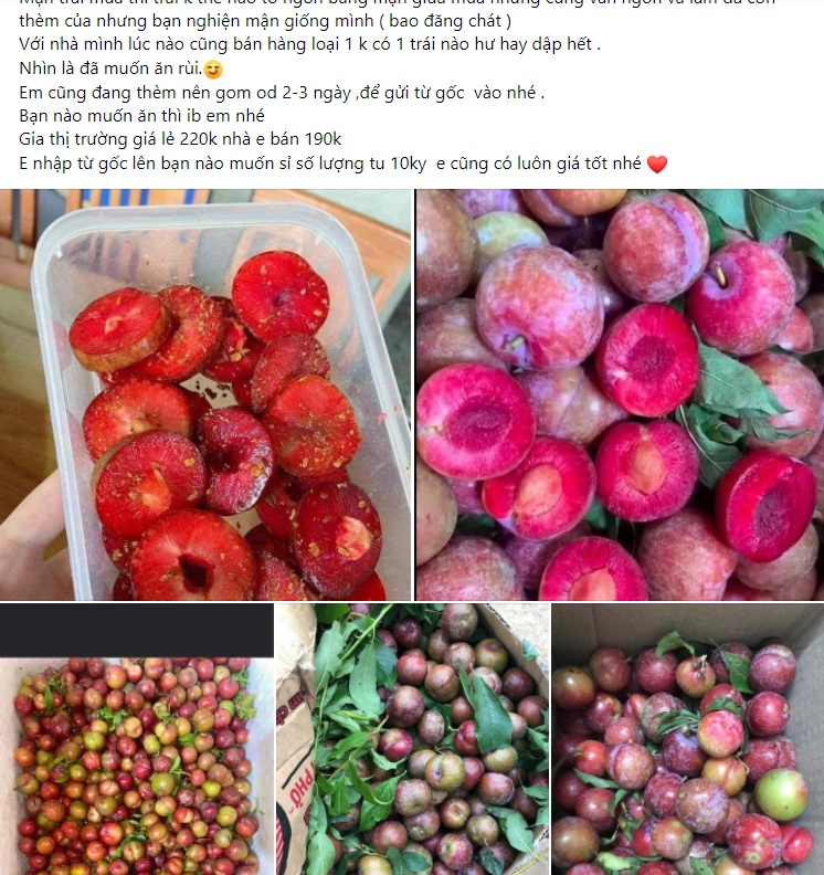 Số lượng mận ít nên bán nhanh hết hàng. Nhiều người cũng thích vị chua chua, giòn giòn của mận đầu mùa nên nhiều địa chỉ online cho biết hàng về đến đâu là sẽ hết đến đó.