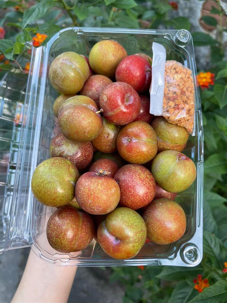 Mận đầu mùa thường được bán online theo hộp có trọng lượng là 500 gram tới 1kg hoặc được bán theo set khoảng 300 gram kèm gia vị chấm với giá trên dưới 100.000 đồng. "Mận đầu mùa giá rất đắt, hơn 200.000 đồng/kg. Do đó, tôi chia nhỏ ra bán thành từng set nhỏ, vừa tiền nên dễ bán", chị Oanh cho biết thêm.