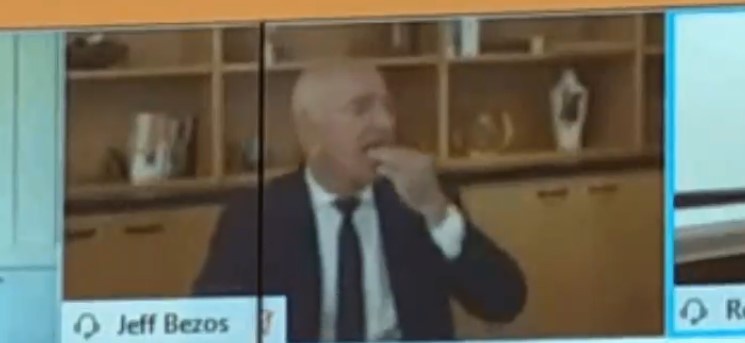 Reuters nhận định cuộc điều trần 4 công ty công nghệ lớn nhất thế giới lại diễn ra theo cách kém công nghệ. Cả 4 CEO ngồi ở nhà và trả lời qua dịch vụ họp trực tuyến, và Bezos đã có thời gian nghỉ ngơi tới 90 phút khi có một sự cố khiến ông không thể trả lời. Khi hình ảnh trở lại, người ta thấy ông đang ăn vặt.