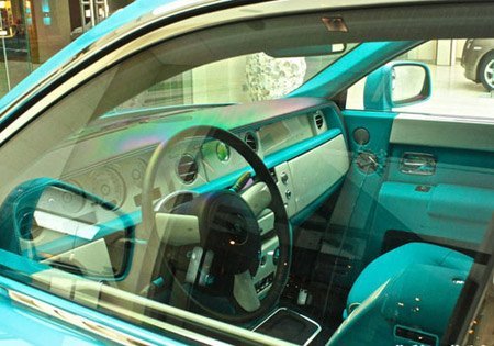 Rolls-Royce Phantom với sắc xanh ngọc độc đáo. Hiện diện trong showroom Rolls-Royce tại Doha, Qatar.
