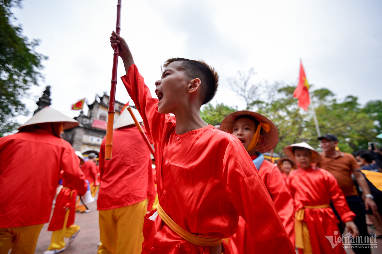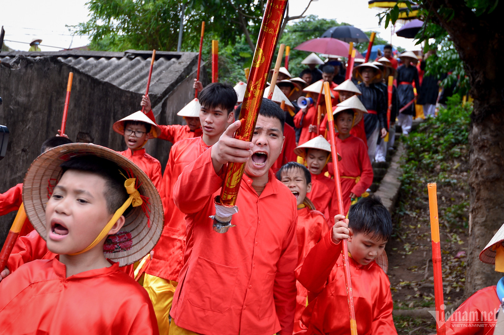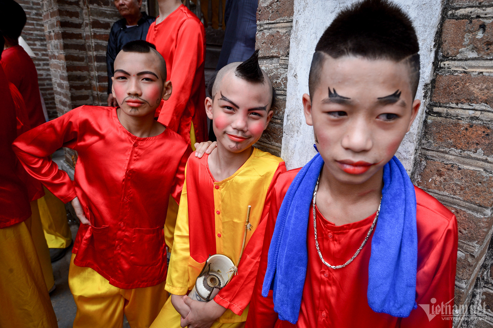 Trần Đức Tuấn làm ông Hiệu Trống đại diện cho toàn làng. Từ nhỏ, chàng trai 21 tuổi này đã nhiều lần tham gia hội với các vai trò khác nhau. Để lễ rước được diễn ra tôn nghiêm, các ông Hiệu không được mở miệng lên tiếng trong suốt quá trình diễn ra nghi lễ.