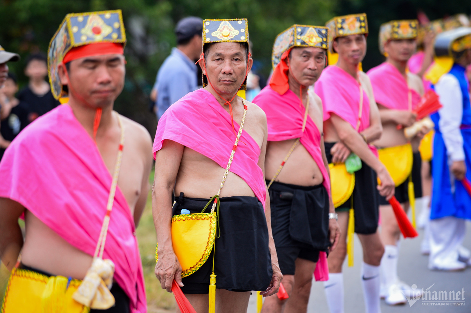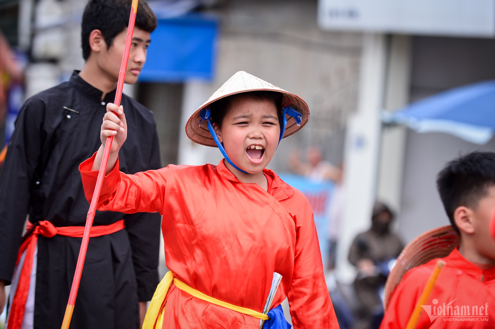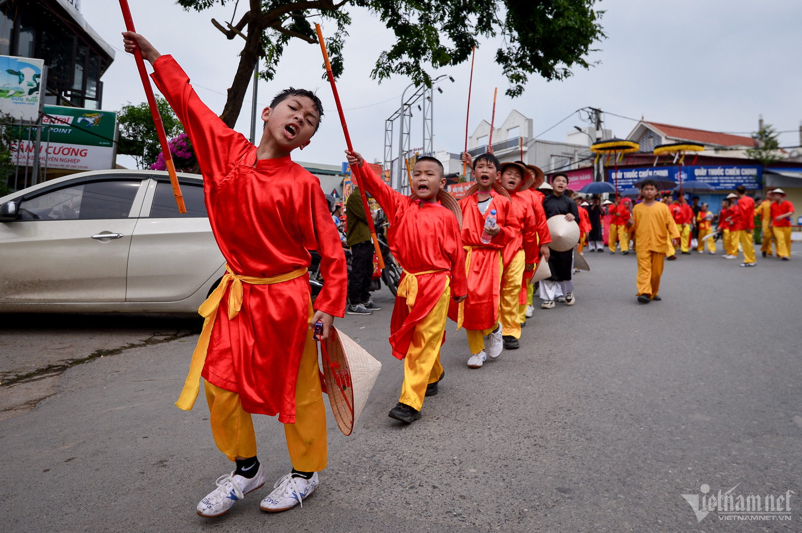 Trần Đức Tuấn làm ông Hiệu Trống đại diện cho toàn làng. Từ nhỏ, chàng trai 21 tuổi này đã nhiều lần tham gia hội với các vai trò khác nhau. Để lễ rước được diễn ra tôn nghiêm, các ông Hiệu không được mở miệng lên tiếng trong suốt quá trình diễn ra nghi lễ.