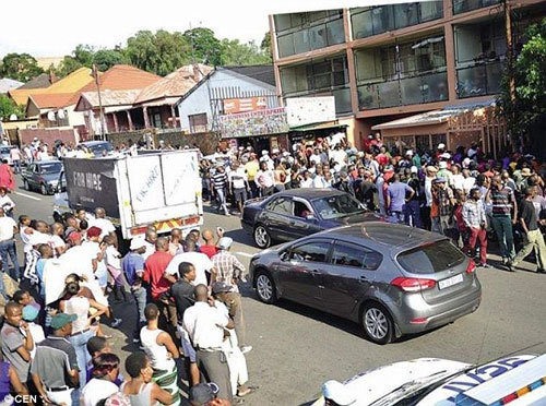 Cảnh sát đã được mời đến để lặp lại trật tự sau khi đám đông tụ tập xem một người vợ ngoại tình và người yêu của cô này bị mắc kẹt lúc quan hệ tình dục.