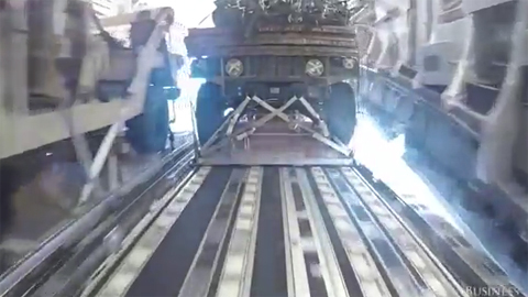 Trang Business Insider đăng tải một buổi tập trận của Không quân Hoa Kỳ, thao tác thả xe bọc thép xuống mặt đất.
