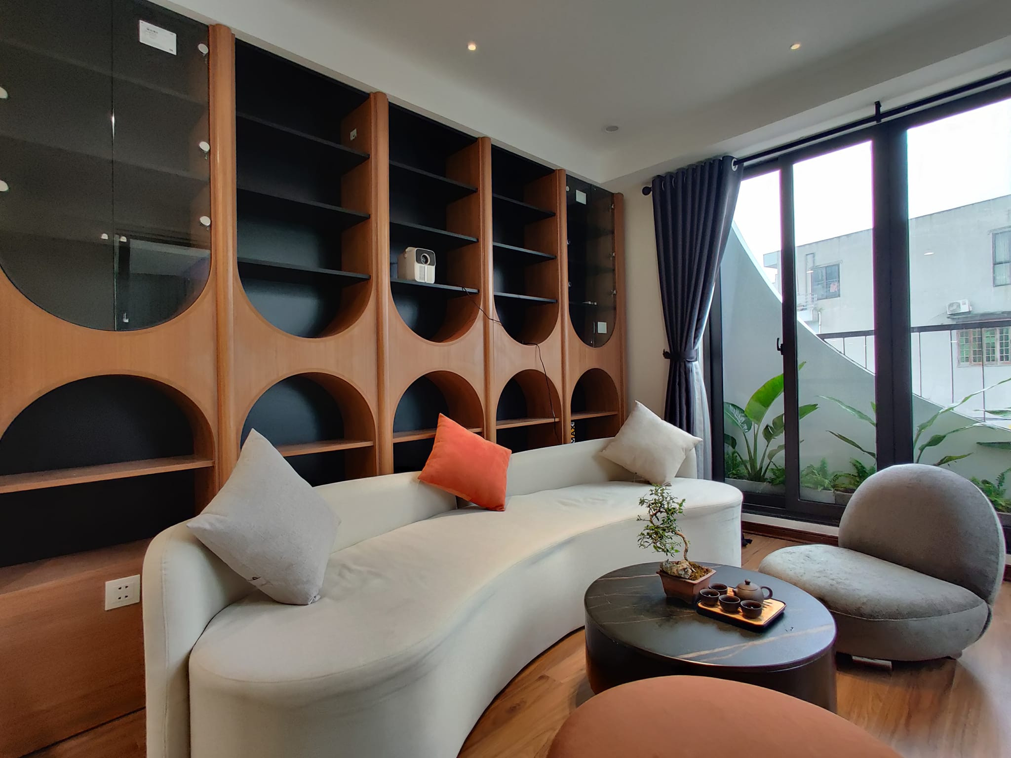 Khi kéo rèm lại, bật máy chiếu là phòng thành rạp chiếu phim mini.