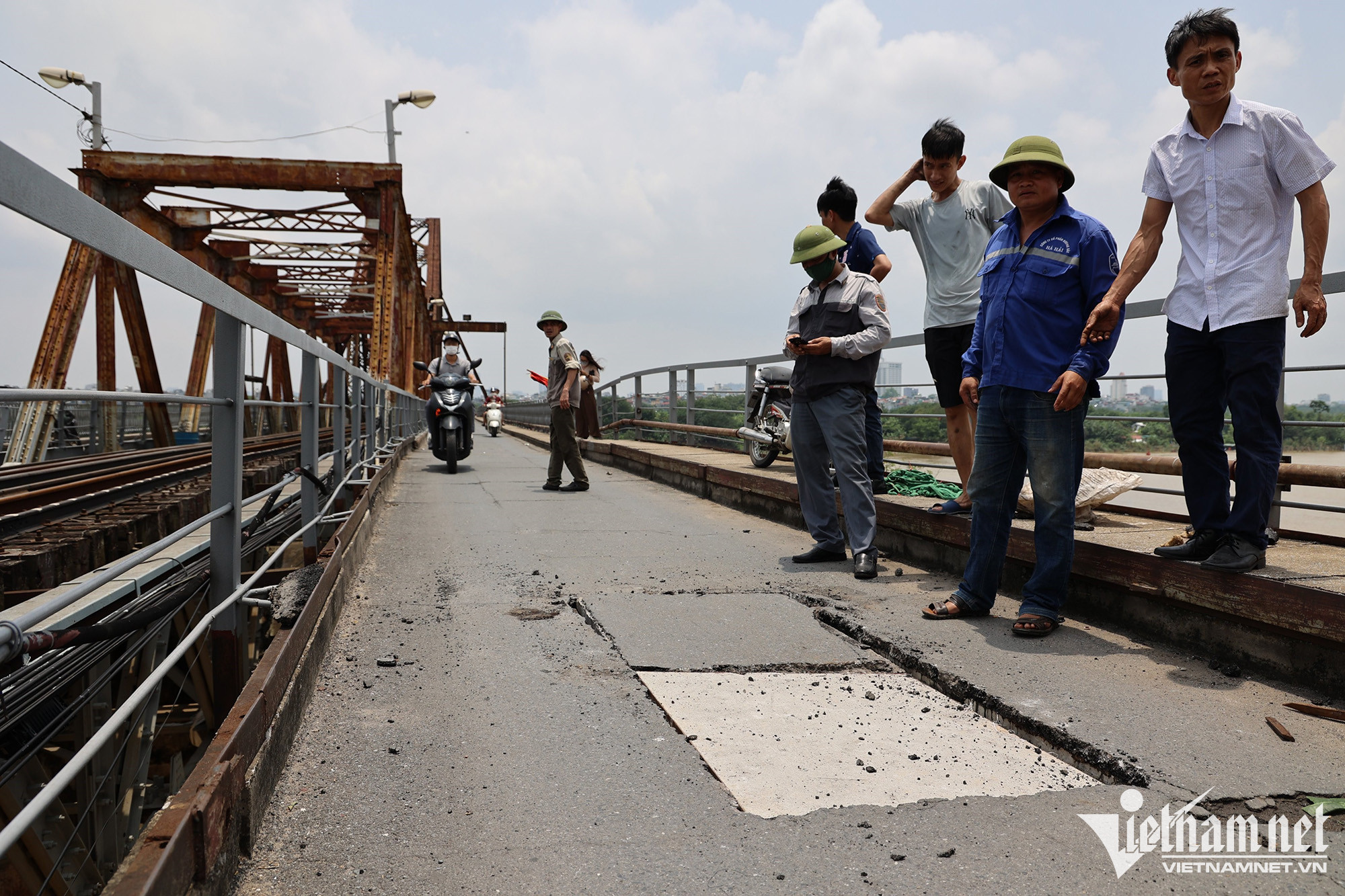 Tuy nhiên, phần mặt cầu dành cho xe máy và xe thô sơ có nhiều đoạn gồ ghề, xập xệ. Trưa 28/5 vừa qua, nhiều người di chuyển qua cầu Long Biên đã phải dừng lại khi mặt cầu xuất hiện một lỗ thủng lớn. Phần lỗ thủng nằm ở giữa đường, chiều từ nội thành sang phía quận Long Biên, có chiều dài khoảng 1,2m, chiều rộng 0,6m.