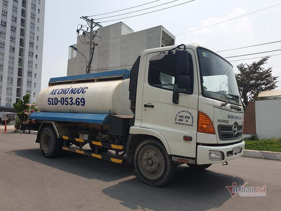 Trưa 31/3, PV VietNamNet có mặt tại chung cư An Phú Đông (phường An Phú Đông, quận 12) cũng là lúc một chiếc xe bồn cấp nước sạch của công ty cấp nước Sài Gòn (Sawaco) rời đi.