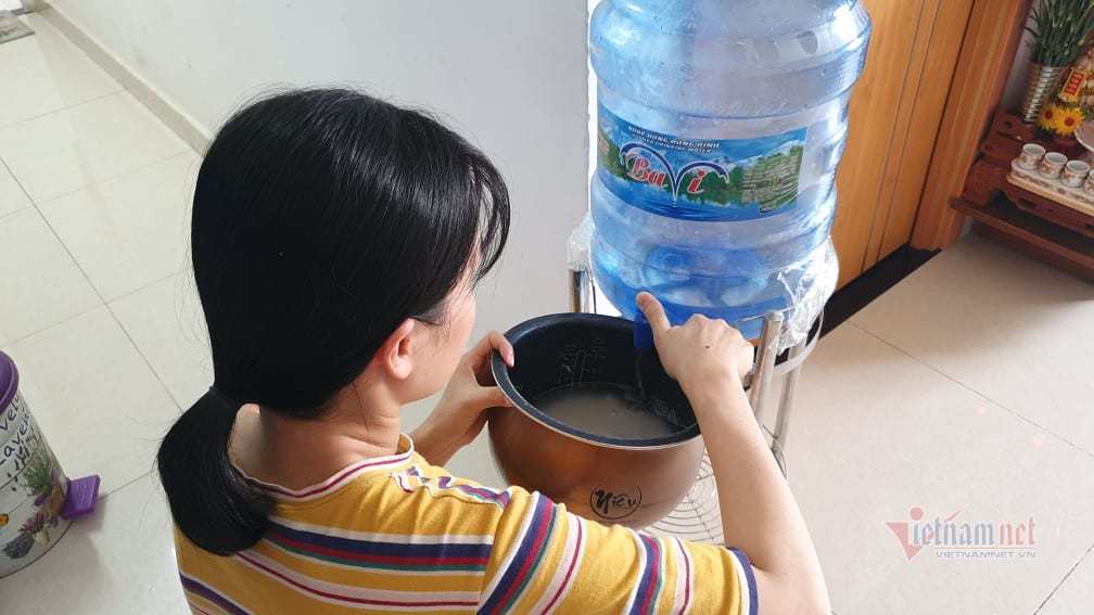 | Một hộ dân sống trên đường Vườn Lài phải mua bình nước lọc về để phục vụ sinh hoạt |