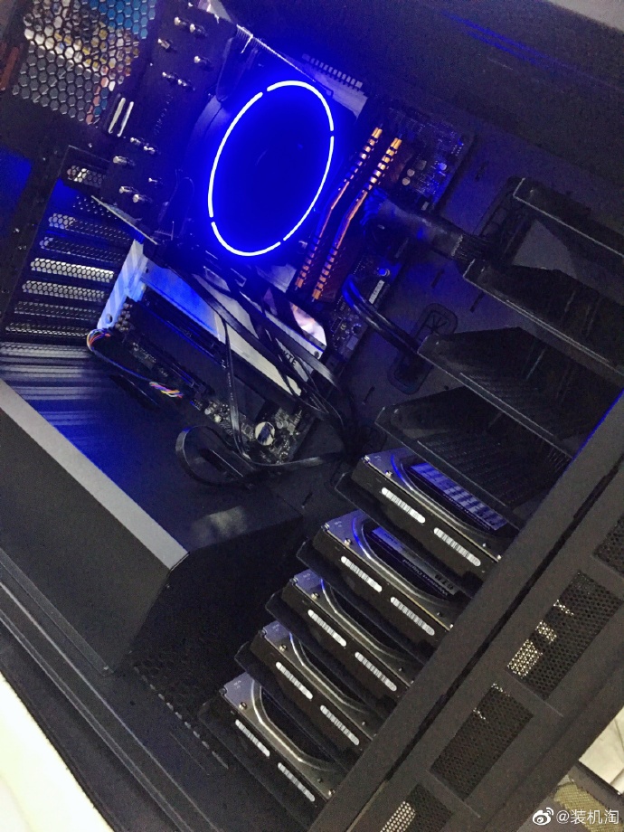 Một đại lý Trung Quốc khoe dàn máy "đào" Chia lắp cho khách. Ảnh: Weibo. |